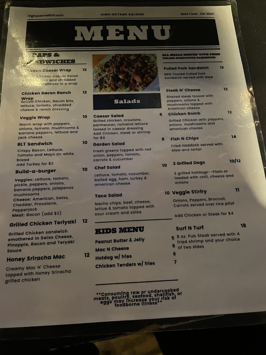 High Octane Saloon Menu (2025 Update)